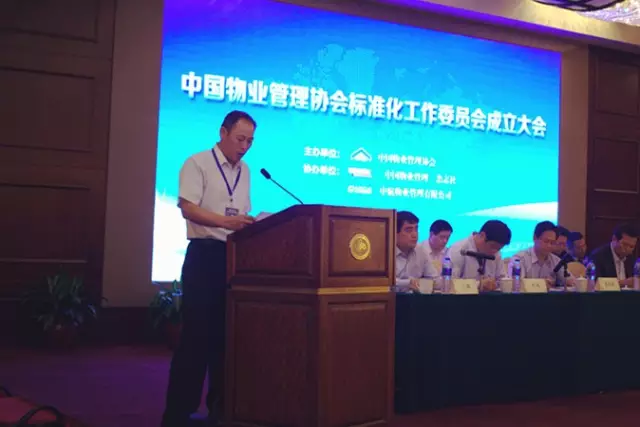 2015年11月24日,由中国物业管理协会主办,《中国物业管理》杂志社、中航物业管理有限公司协办的“中国物业管理协会标准化工作委员会成立大会”在东莞市隆重召开。来自全国各地的由协会会员单位推选出来的近180多名标准化工作委员会委员参加了此次成立大会。中国物业管理协会会长沈建忠、住房城乡建设部房地产市场监管司副司长王玉平,广东省住房城乡建设厅住宅与发展处处长黄祖璜,中国物业管理协会副会长李健辉、林常青、闻涛、石正林、宫雅玲、李风、李书剑、刘德明,秘书长王鹏,中国标准化研究院服务业标准技术研究所副所长曹俐莉、广东省物业管理行业协会会长黎家河等领导出席了大会。会议由中国物协秘书长王鹏主持。
